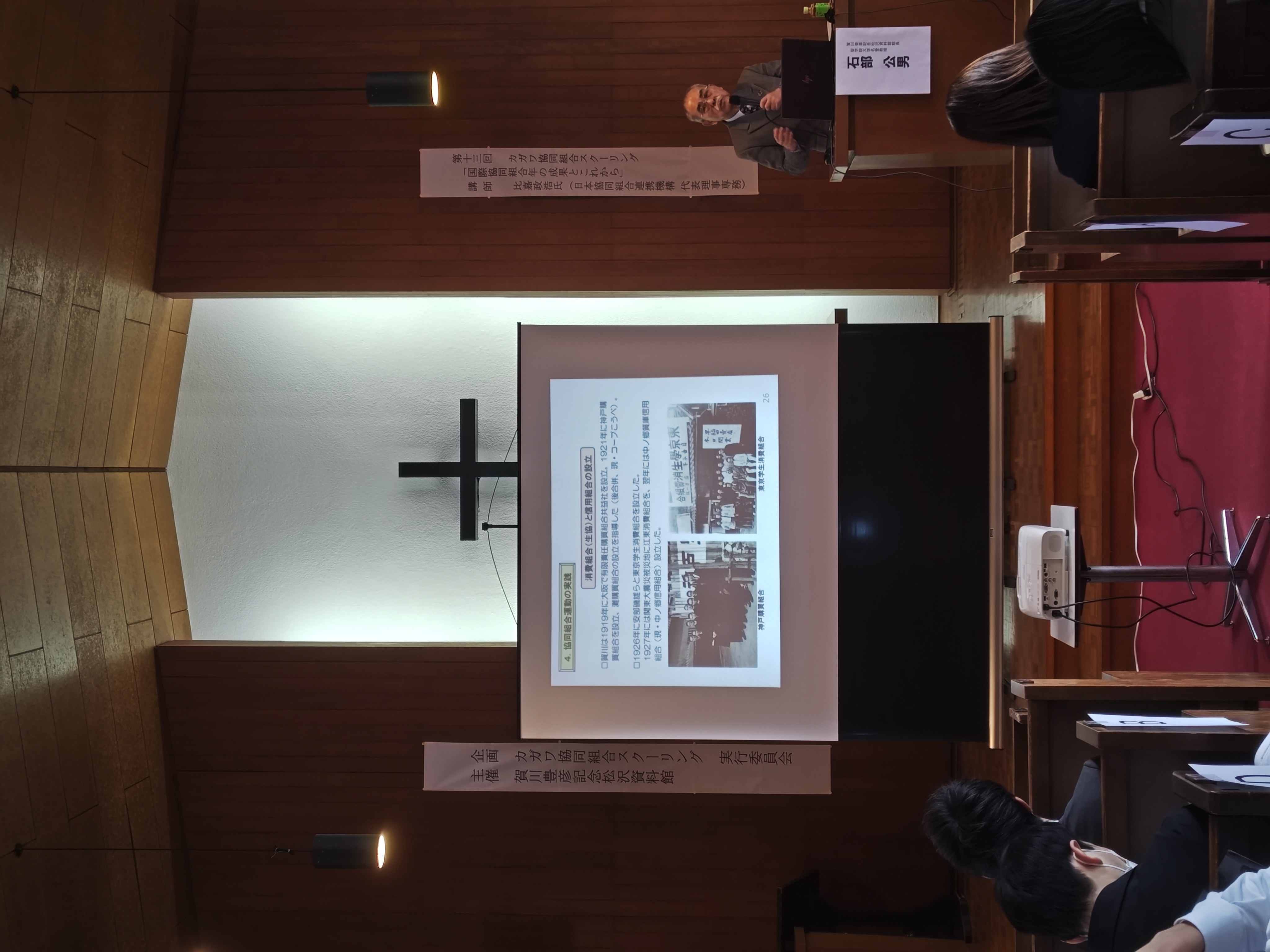 1月30日(金)に、「第13回 カガワ協同組合スクーリング」が開催されました。「カガワ協同組合スクーリング」は、協同組合の原点である賀川豊彦の思想や志に学び、現代の協同組合運動について考える学びと交流の場として毎年1月頃に開催されています。今年もJA全中様、こくみん共済coop様、日本生活協同組合連合会様、コープ共済連様といった、日本を代表する各協同組合の方々約50名が来られました。